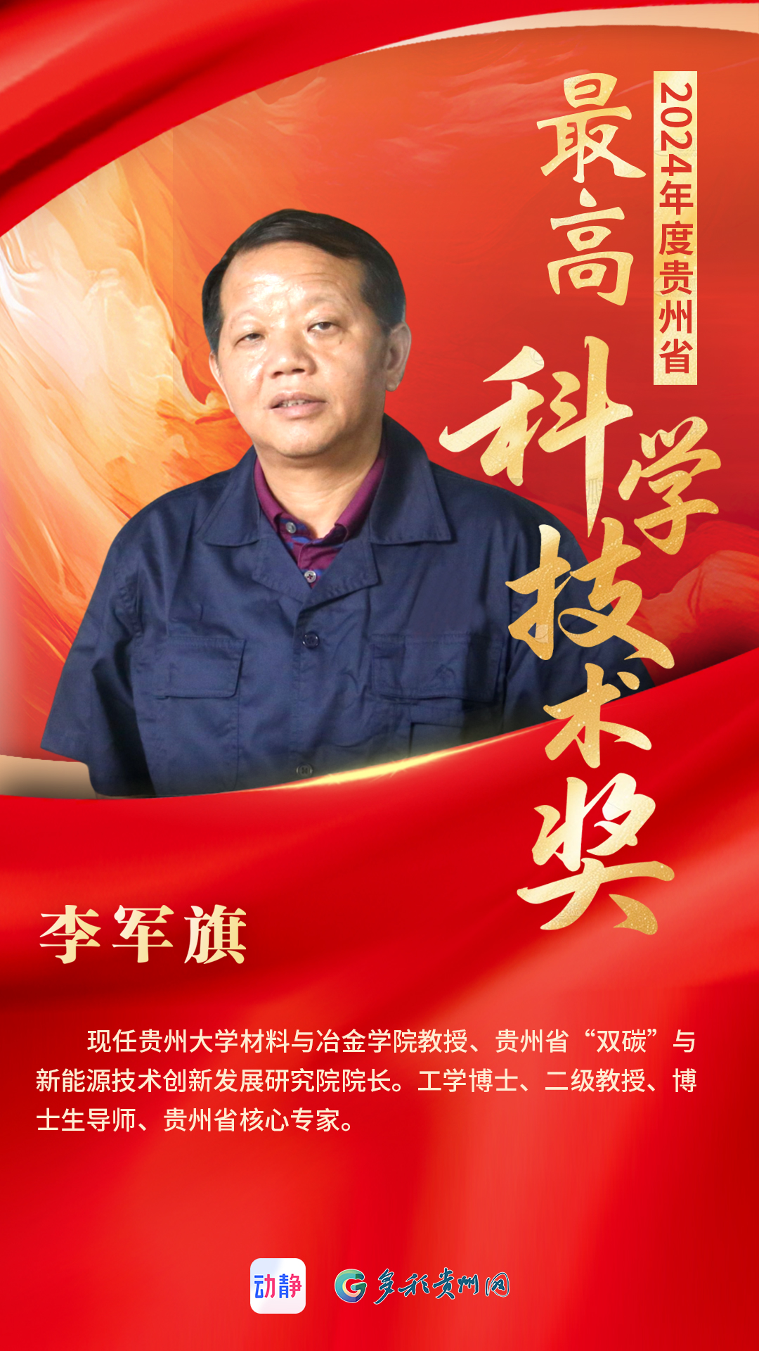 11月4日,贵州举行全省科学技术奖励大会,贵州大学教授李军旗获省最高科学技术奖。
